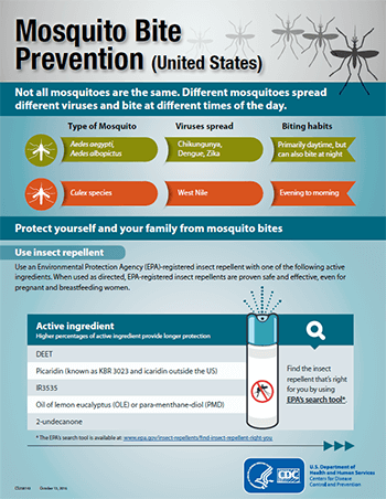 - Use EPA-registered mosquito repellents when necessary and follow label directions and precautions closely.